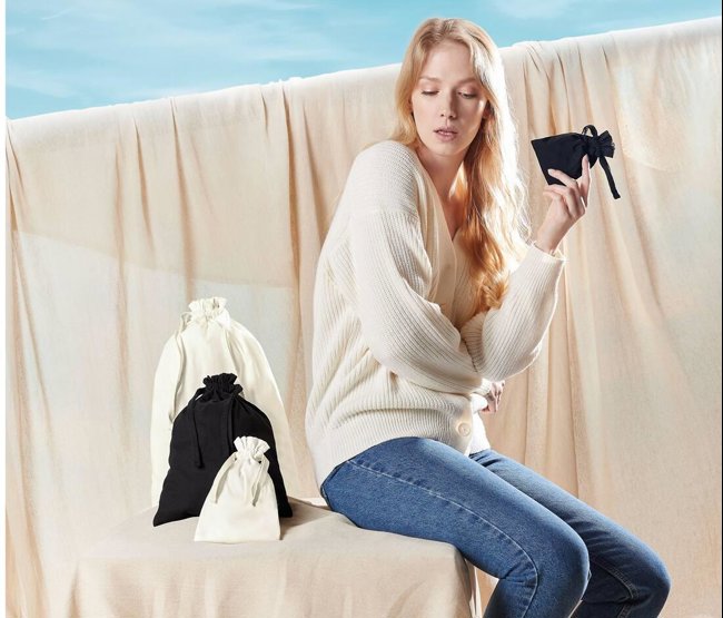 100% Soft Organic Cotton - 115gsm (3.5oz/yd²). Self-fabric double drawcord closure. Available in four sizes - XS, S, M, L. Dimensions: L - 30 x 47 cm. Dimensions: M - 25 x 32 cm. Dimensions: XS - 10 x 15 cm. Dimensions: S - 14 x 22 cm. Capacity: M - 3 litres. Capacity: L - 8 litres. Capacity: S - 1 litres. Capacity: XS - 0.25 litres. Maximum Embroidery: S - . Maximum Embroidery: L - 18 cm tubular hoop. Maximum Embroidery: XS - . Maximum Embroidery: M - 12 cm tubular hoop. Maximum Print Area: L - 27 x 41 cm. Maximum Print Area: M - 22 x 26 cm. Maximum Print Area: XS - 8 x 9 cm. Maximum Print Area: S - 12 x 16 cm